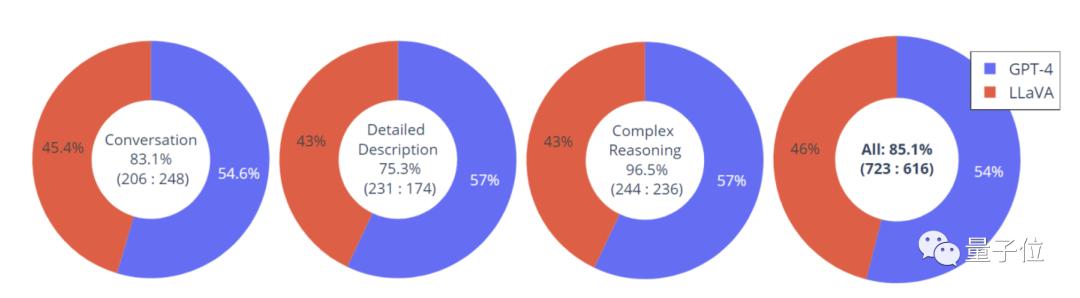开发过程完毕之后,研究团队使用GPT-4对LLaVA的输出内容进行评价。