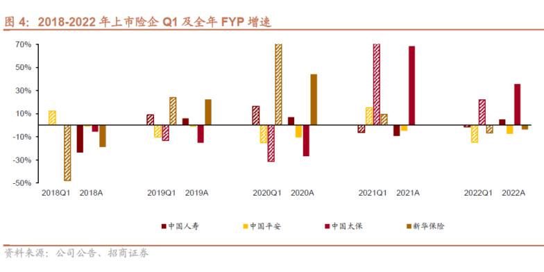 对于上市公司来说,开门红是全年经营的重中之重,而从趋势上来看,开门红期间各公司的业务表现对全年经营几乎具有决定性的影响作用。招商证券非银团队首席郑积沙分析称,复盘近五年上市险企的新单保费数据可见,第一季度相对领先的公司,一整年几乎都能维持竞争优势,如2018年平安、2019年-2020年新华、2021年-2022年太保均是如此。