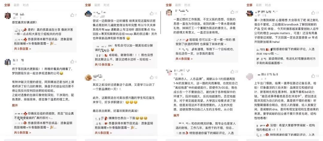 比如,「美妆内行人」邀请了透象创始人老杨、闻献创始人孟昭然进行对话,在评论区也有多位网友表示“好评”、“干货多”。