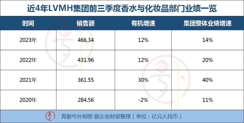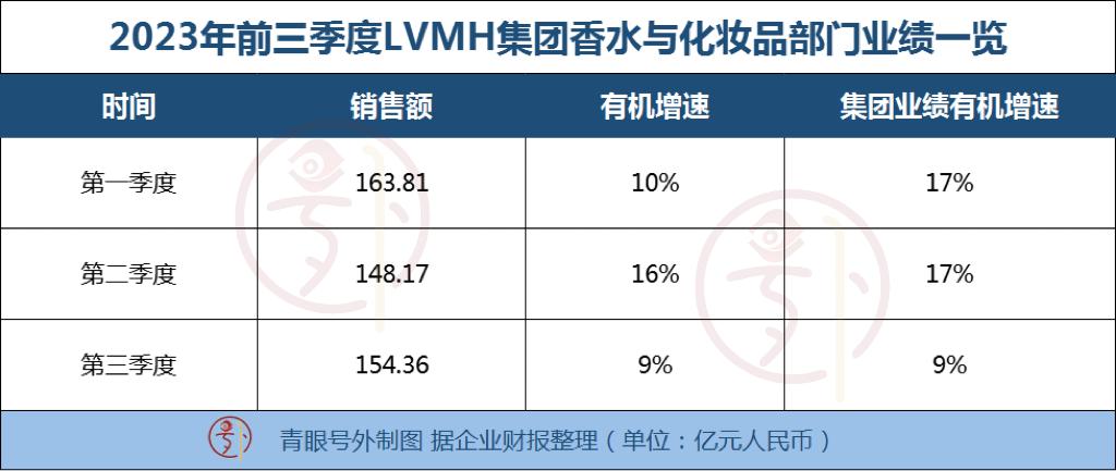 青眼号外对比发现,今年第三季度LVMH香水与化妆品业务9%的有机增速与集团整体业绩增速持平。而这,也是近三年来的首次。