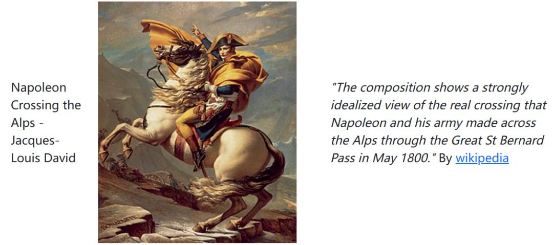 还有看图配乐的功能,给出一个经典的拿破仑骑马穿越阿尔卑斯山的图,再对图片进行一些描述, MusicLM 就能给生成 30s 的配乐。
