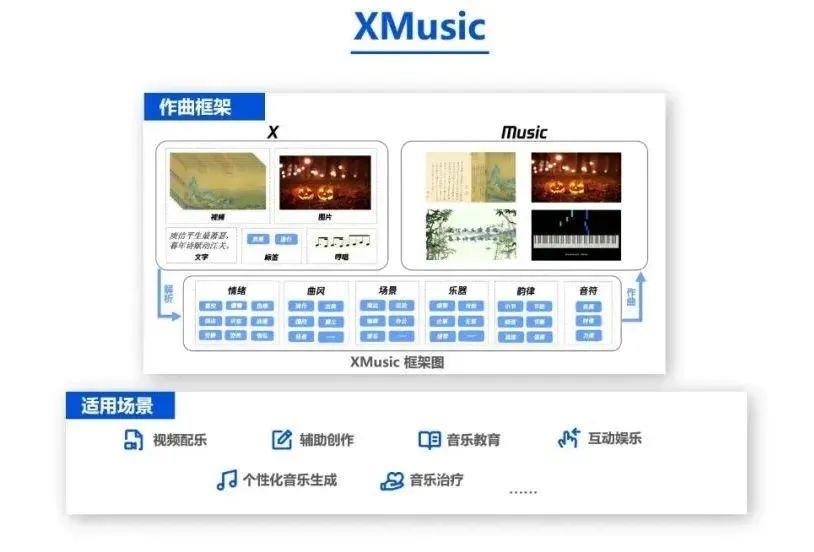 在前不久的 2023 世界人工智能大会上,腾讯多媒体实验室也展示了自研的 AI 通用作曲框架 XMusic 。