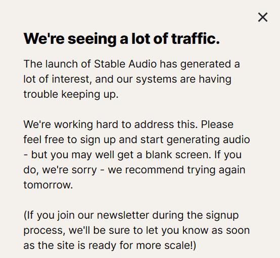 由于是刚发布,世超还花了好一会儿时间才进到 Stable Audio 的使用网页。