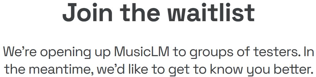 MusicLM 同样没有对外公布,想要体验只能在 AI Test Kitchen 上排队获取内测资格。