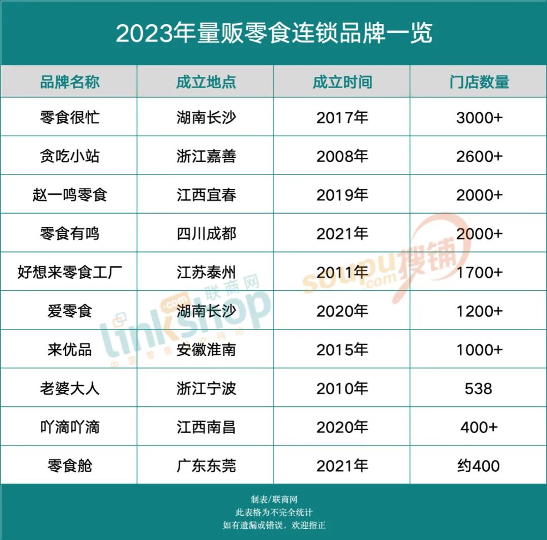 截至今年8月,连锁门店数量超过千家的量贩零食品牌,就有零食很忙、零食优选、爱零食,赵一鸣,零食有鸣,好想 来,糖巢零食等。它们共同组成了量贩零食业态中阶段性的头部玩家。
