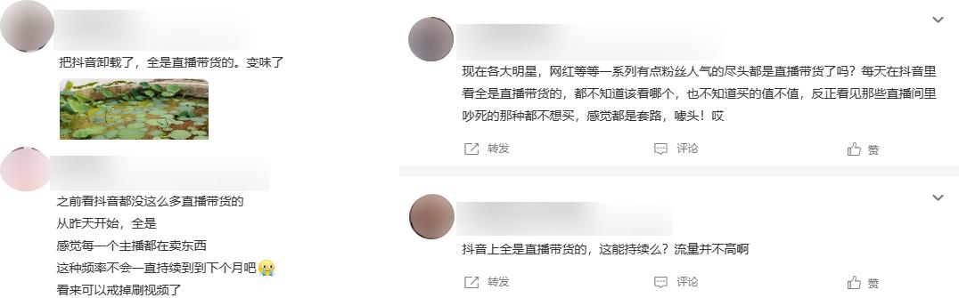 (抖音带货太多,影响刷短视频体验 / 图片来源:微博)