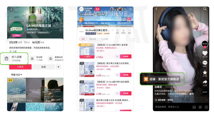 如果你是抖音重度用户,大概也已经发现,今年抖音不仅把“商城”从二级入口调整到顶部一级入口,还在直播、主页等多个地方,加强对品牌官方店铺的引流。