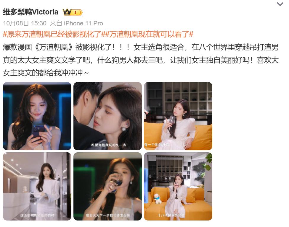 10月初的剧圈谈资多由国漫改编项目贡献:网传迪丽热巴将出演快穿虐渣题材漫画改编剧《万渣朝凰》,一人对打八个男主,比杨紫的《长相思》翻一倍。《狐妖小红娘王权篇》则官宣主演为成毅、李一桐,加上分别撬动了杨幂、刘诗诗出演的《月红篇》与《竹业篇》,高情商说法是古偶精锐军,低情商说法是略显老龄化的“狐妖宇宙”正式成型。