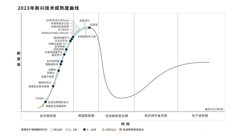 在市场研究公司Gartner今年9月初发布的“2023年新兴技术成熟度曲线”中,生成式AI目前正处于期望膨胀期,“其发展前景还存在很大的不确定性。”Gartner研究副总裁Melissa Davis如此判断。