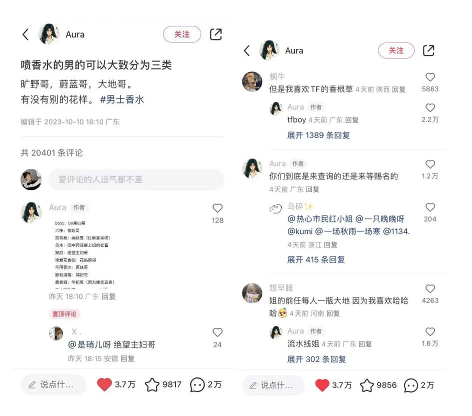 借消费者之口来给自己做广告,真实感、代入感和归属感就这么自然而然产生了;不直接描述香味,偏爱描述环境对香味的反应,更是把想用香水立人设的心理琢磨透了,哪怕是对“香评诈骗”保持高度警惕的人也容易放下戒备。