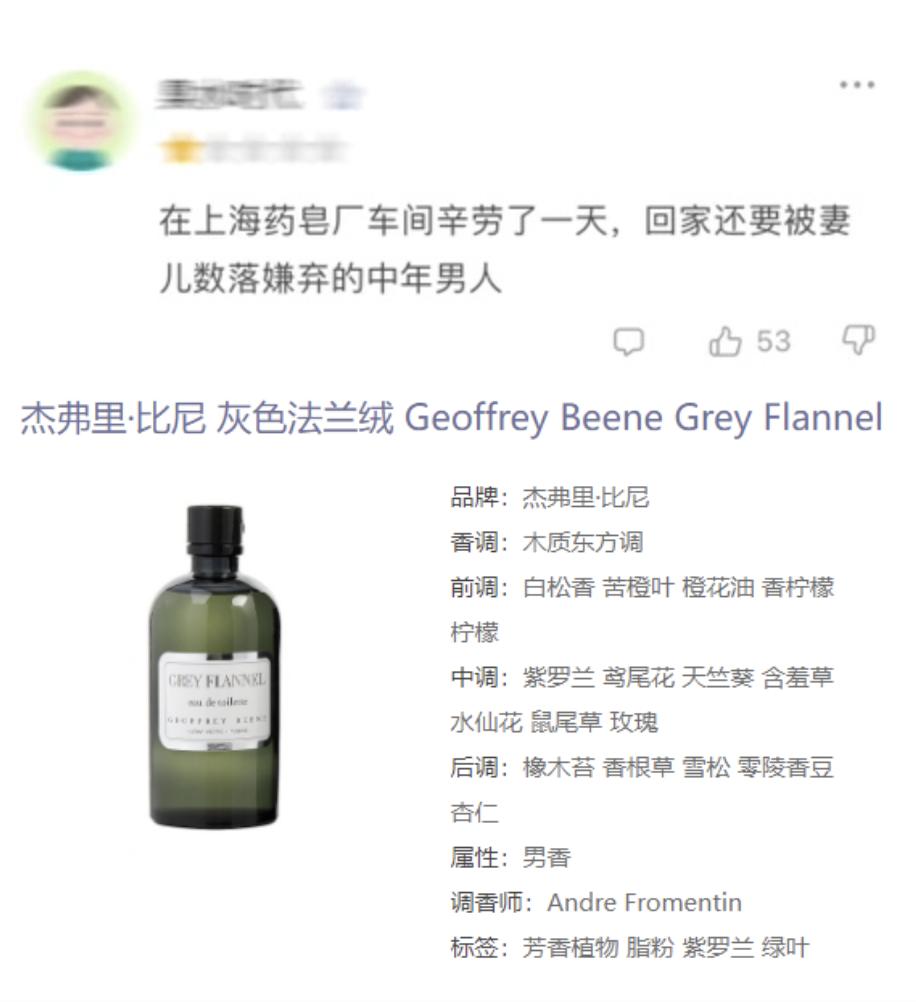 杰弗里·比尼 (Geoffrey Beene)的“灰色法兰绒”同样苦涩,看名字遐想温暖,喷上身何止温暖,简直捂了一整天: