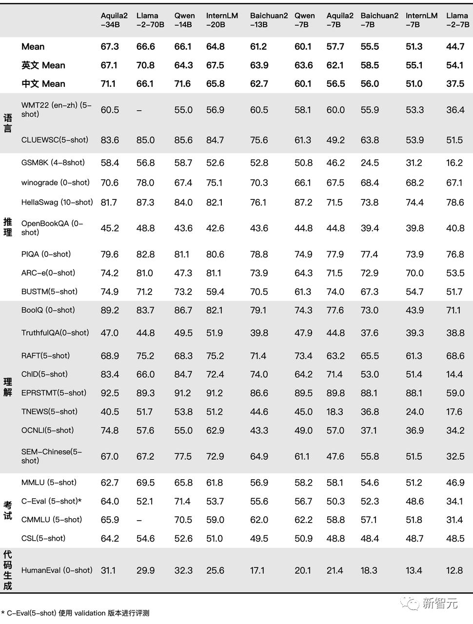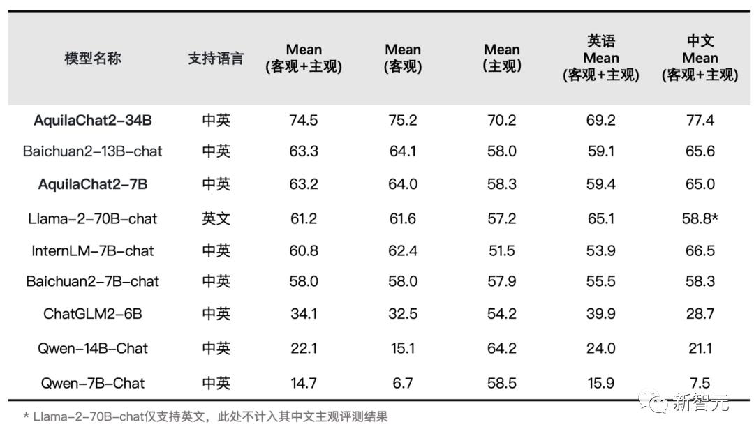 架构升级、算法创新、数据迭代,也使Aquila2在中英文综合能力方面进一步突破。