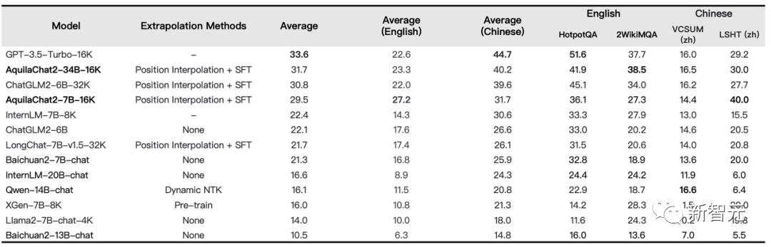 对此,智源以Aquila2-34B为基座,经过位置编码内插法处理,并在20W条优质长文本对话数据集上做了SFT,直接将模型的有效上下文窗口长度扩展至16K。