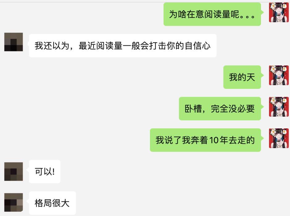 今天有人问我,觉得我公众号断更好久了,现在流量这么少,会不会打击我的积极性。我是这么回答的⬇️