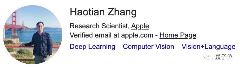 张昊天现在为苹果AI/ML团队视觉智能研究员。