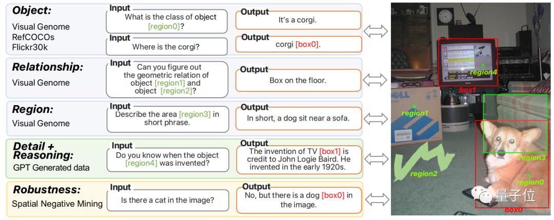 这个数据集包含1.1M个样本,涵盖了个体对象、对象之间的关系、特定区域的描述以及基于区域的复杂推理等四个主要类别。