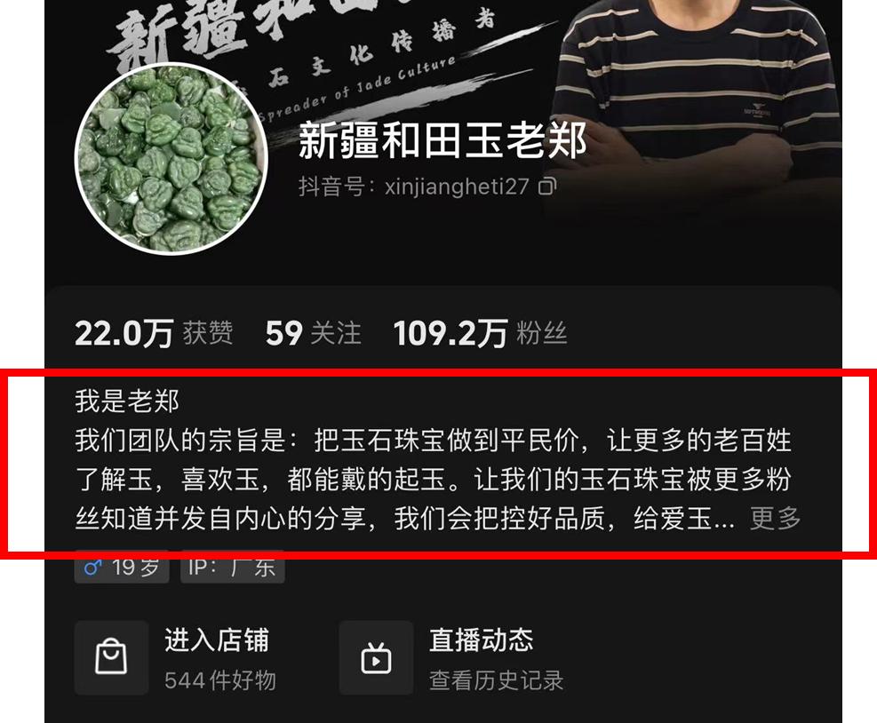 以前文里的@新疆和田玉老郑最具表率作用,卡思数据曾在文章《36万粉丝、单月带货2.5亿,珠宝赛道第一名如何炼成?》里有过到老郑直播的分析,除了货品的“平民价”路线、以及“宠粉的靠谱老头”的人设建立外,卡思认为,老郑之所以能够实现“低粉高销”,还在于他对于一个曾被大量珠宝商家忽视的客群——小镇中、老年的深度挖掘。