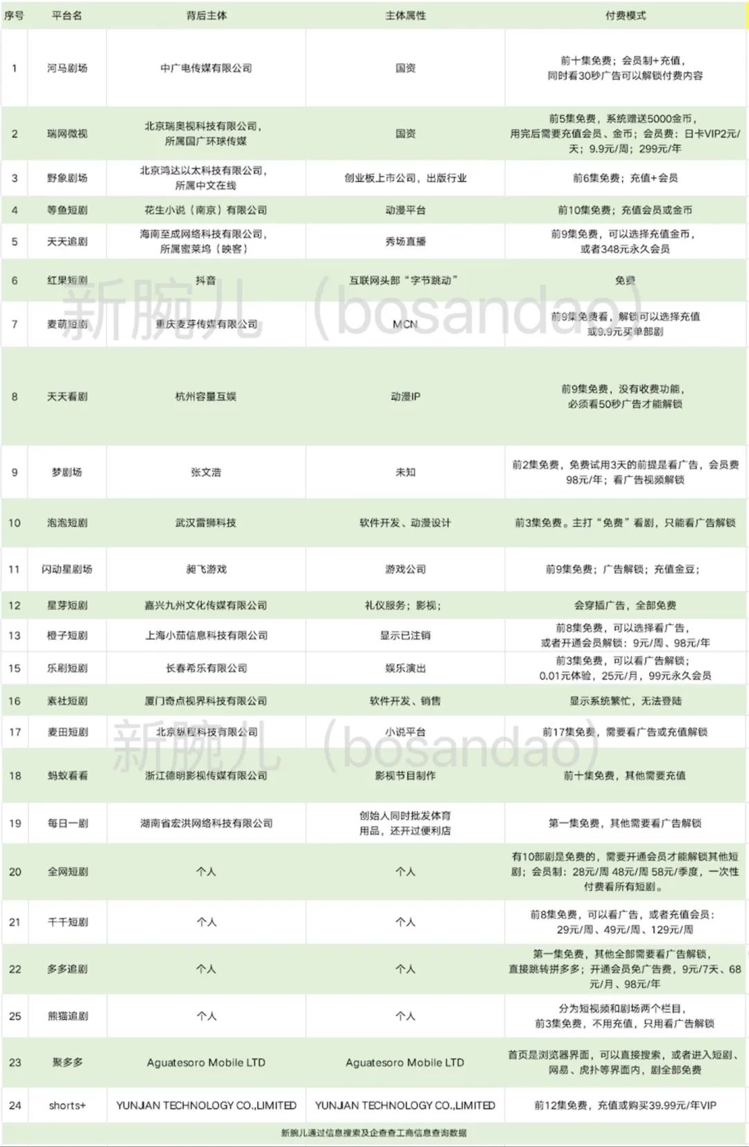 另外包括天天看剧、泡泡短剧、麦田短剧,从企查查数据看到,他们背后所属的公司均为动漫、小说类企业,这也意味着,他们天然具备一定的版权优势。