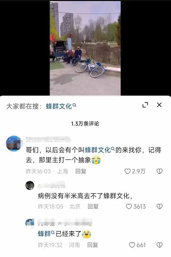 今年4月,博主“姜阿四”因为颇为抽象的“溥仪社会摇”,仅发布4条视频就得到了众多网友关注,并被一致认定为适合蜂群文化:“病例没有半米高去不了蜂群文化。”