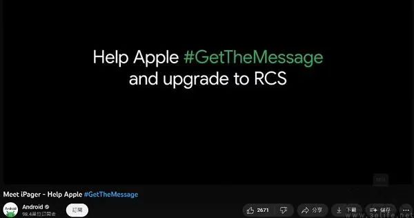 如今,三星也加入到了此次由谷歌主导的“Get The Message”运动中,并在YouTube上发布广告、呼吁苹果采用RCS。然而,苹果对“Get The Message”却极度消极,去年有一位消费者向苹果CEO库克吐槽,因为她使用Android手机而无法向母亲发送某些视频时,后者的回答是“可以给你妈妈买一部iPhone”。