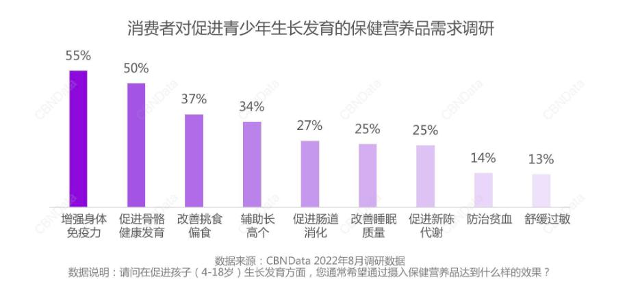 此外,家中有宝贝需要呵护的人群也是健康营养品的重要客源。据CBNData调研显示,准爸爸购买营养品往往出于更希望胚胎健康发育的因素,而准妈妈则担心孕期营养不均衡,更希望通过食补增强身体抵抗力。青少年的家长们购买保健品则是希望可以解决孩子挑食偏食、抵抗力弱、生长缓慢、注意力不集中等问题。