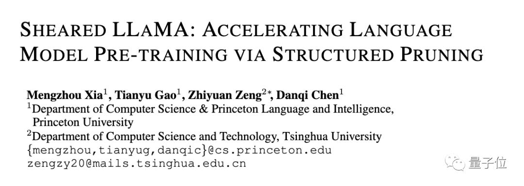 论文作者分别为普林斯顿博士生夏梦舟、高天宇,清华Zhiyuan Zeng,普林斯顿助理教授陈丹琦。