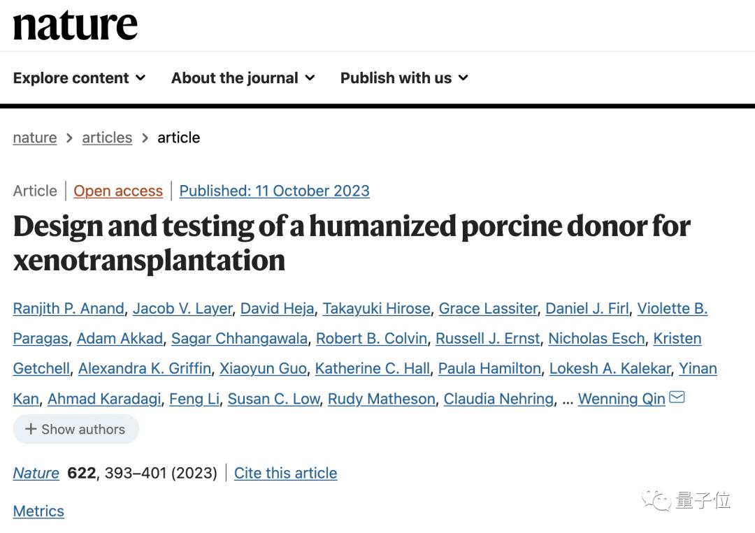 最新一期的Nature刊载了一项关于基因编辑猪肾移植的研究。