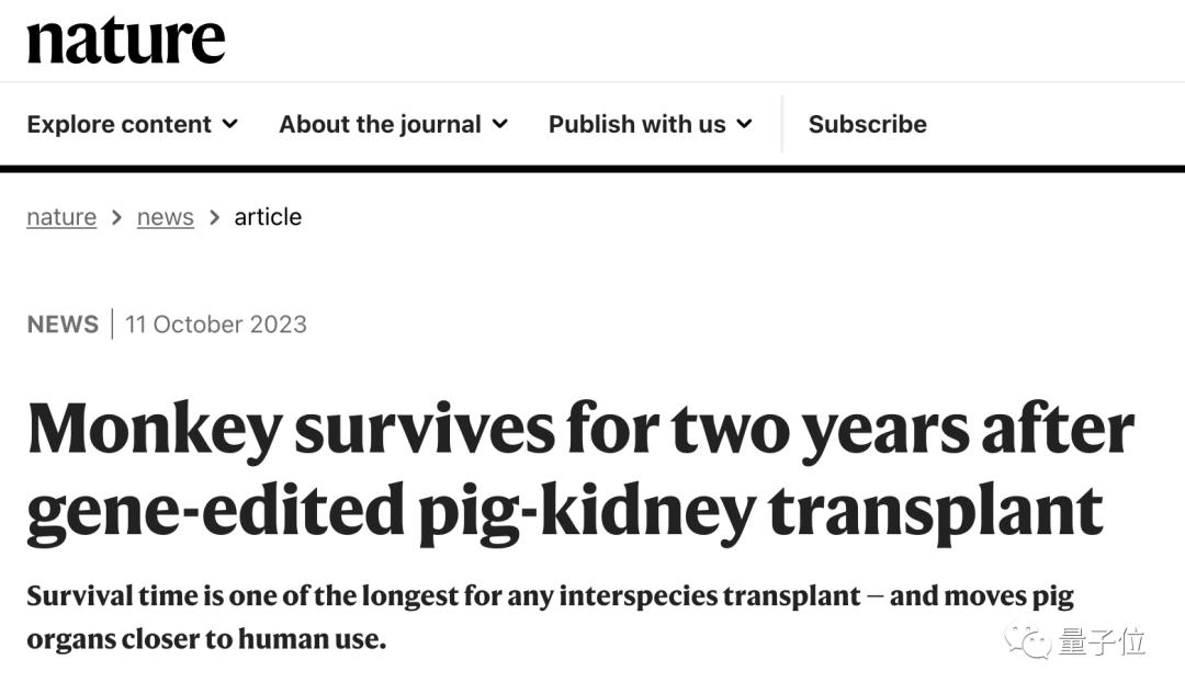 移植猪肾猴子成功存活两年,Nature发布跨物种器官移植最新成果