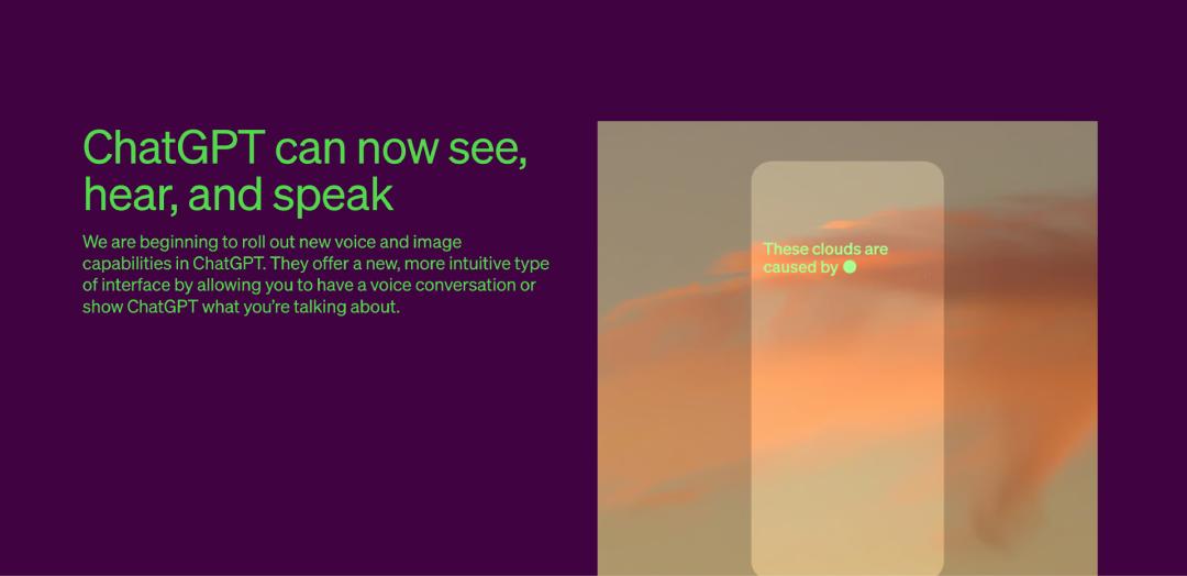 如今每个人都已经知晓这个故事的最终结局 —— ChatGPT 即为这一项目迄今孕育出的最辉煌的诞生成果;2023 年 9 月 25 日,OpenAI 官方博客也宣布了 ChatGPT 的更新:首次推出多模态功能,ChatGPT 开始支持语音与图像的识别与内容创作,OpenAI 为其聘请了专业配音演员创作声音内容,人类用户终于能通过语音来与 ChatGPT 直接对话。