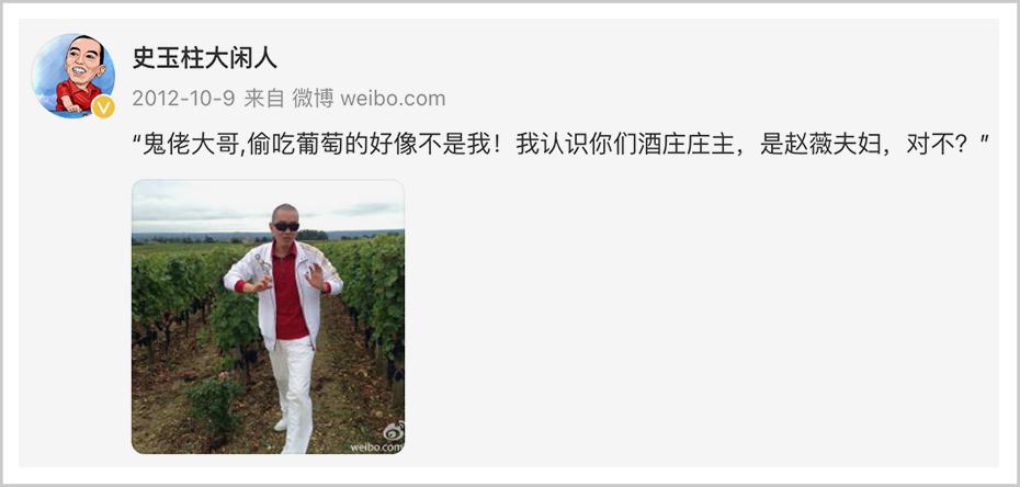 比如他时不时就会买一张到法国的机票,飞去赵薇位于波尔多的酒庄品酒,到了以后还不忘拍张照片发微博嘚瑟一下: