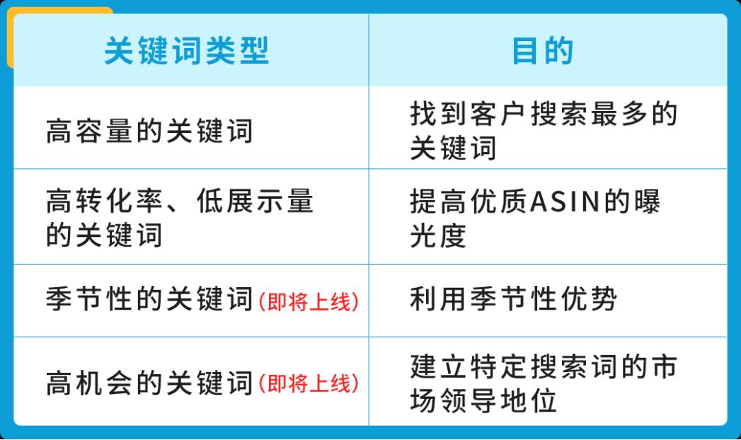 可以帮助卖家快速找到“高搜索量关键词”“高转化率关键词”“低显示量关键词”“季节性关键词”“高机会关键词 ”等,以抓住更多“好流量”。