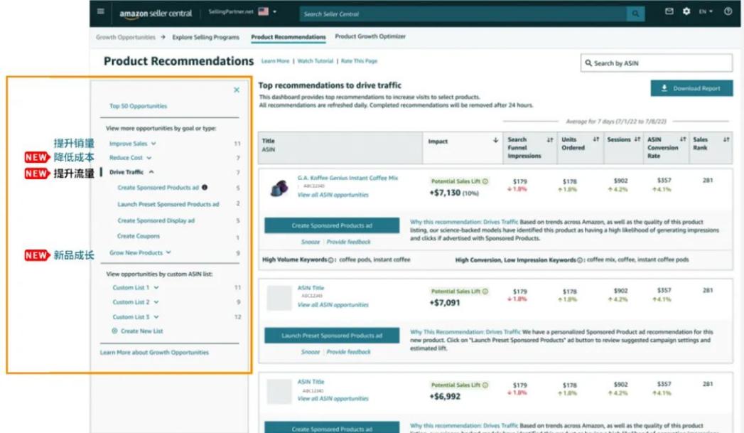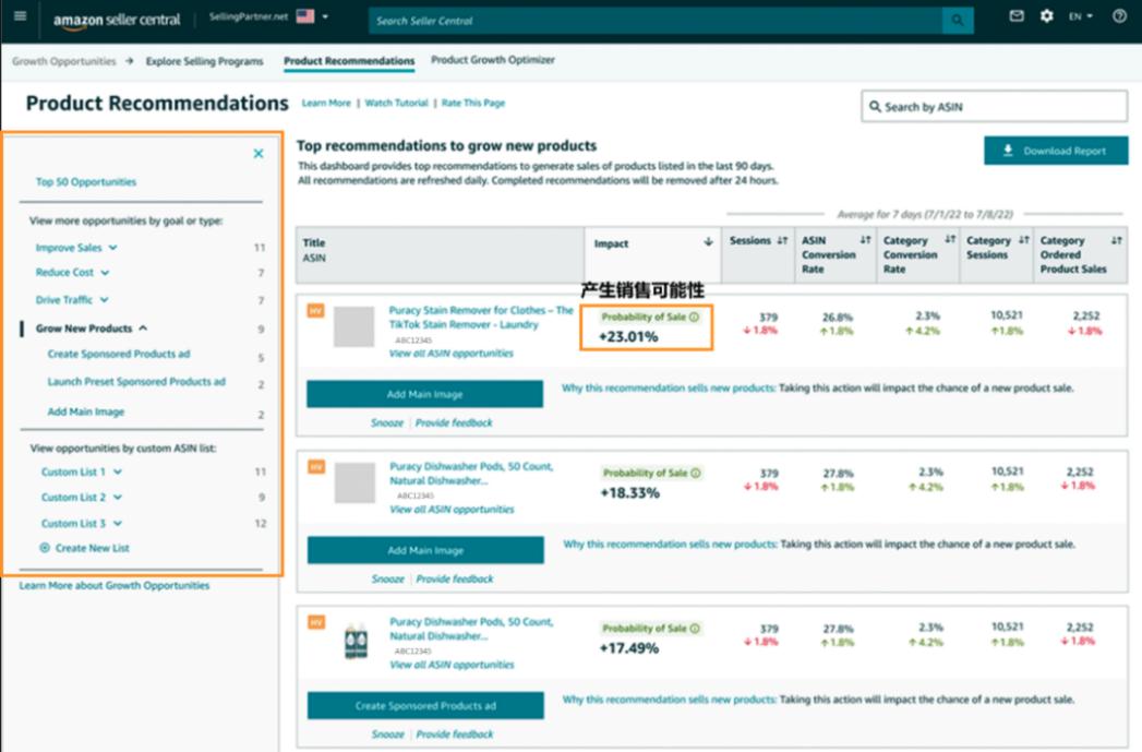 此外,亚马逊后台还有一个很好用的AI工具——增长机会。