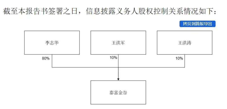 当前贵人鸟第一大股东泰富金谷共有3名股东,分别为李志华、王洪军和王洪涛,其中,李志华持有泰富金谷80%的股份,王洪军和王洪涛分别持有10%的股份。