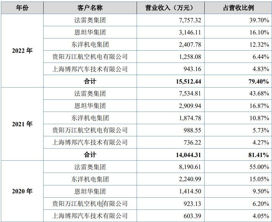 客户方面,捷众科技主要为法雷奥、恩坦华、东洋机电等一级供应商提供各类零部件。公司属于上汽通用的一级供应商。产品最终应用于奔驰、宝马、奥迪、特斯拉等知名汽车品牌。2020年—2022年间,捷众科技向前五大主要客户的销售额占营收比例分别为 89.81%、81.41%、79.40%,呈现客户集中度较高的情况。