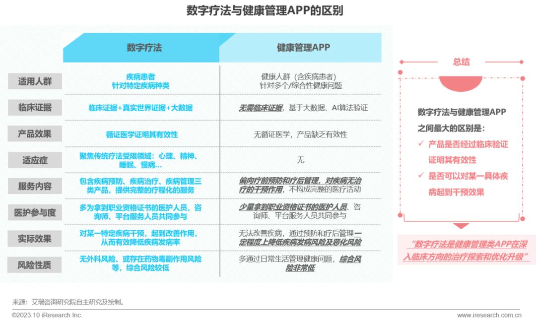 “临床证据”和“针对某一具体疾病进行干预”,是区分数字疗法与健康管理APP的主要衡量标准