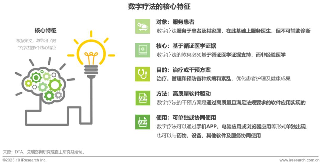 概念解读:数字疗法使用基于循证医学证据、经过临床评估的软件直接向患者提供医疗干预,以治疗、管理和预防各种疾病和紊乱。他是数字医疗和数字健康的子集,是健康管理类APP在深入临床方向的治疗探索和优化升级,是传统疗法的补充、实现服务中心从“医生”到“患者”的转变。它可以单独使用,也可以与药物、设备或其他疗法配合使用,以优化患者治疗和预后,改善患者健康状况。