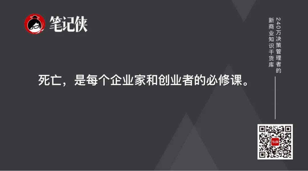 其实,不管是人生的过程,还是做企业的过程,我们很少有时间去思考死亡,更多的时候,我们都在竭尽所能的想着,应该怎么活下去。