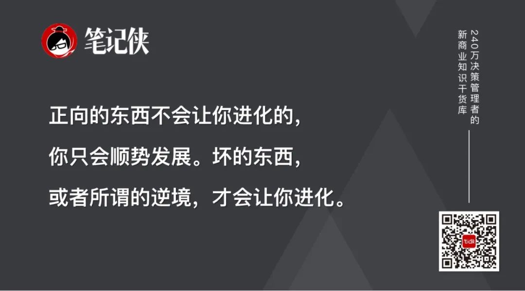 正向的东西不会让你进化的,你只会顺势发展。坏的东西,或者所谓的逆境,才会让你进化。