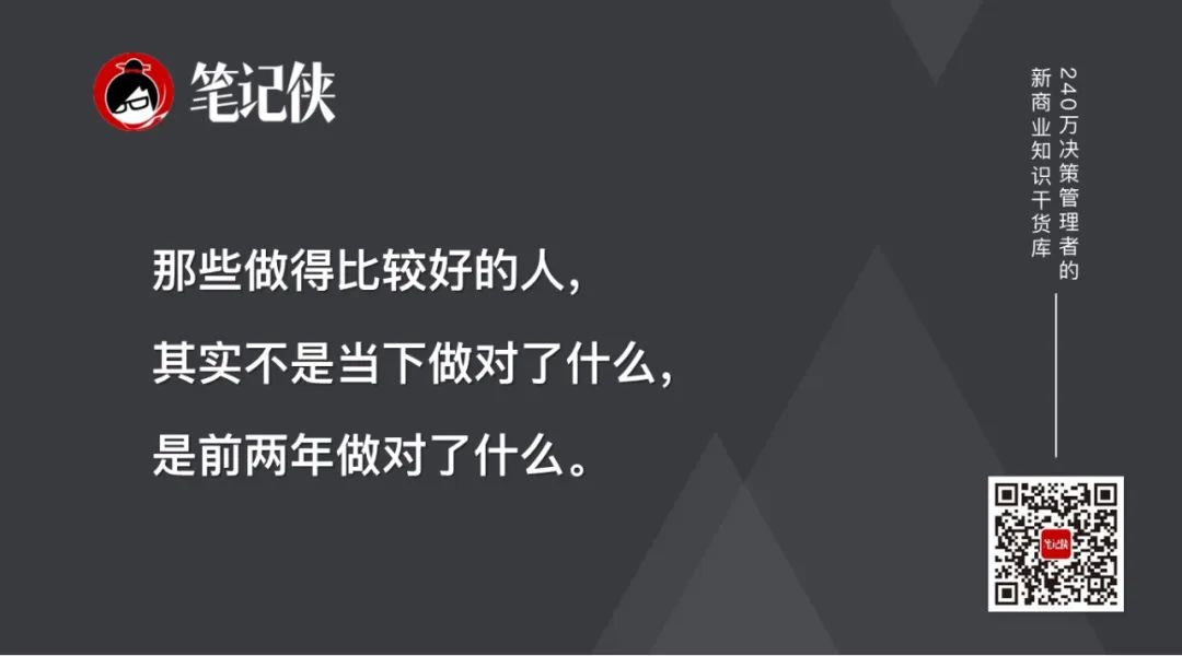 那些做得比较好的人,其实不是当下做对了什么,是前两年做对了什么。