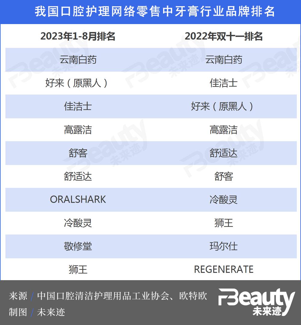 可见,牙膏市场其实还有许多值得挖掘的新的增长点。而整个市场在加速竞争、法规出台之后,也将迎来更高质量的发展。在高质量的竞争格局之下,牙膏市场的排位还会发生哪些变化?《FBeauty 未来迹》将持续关注。