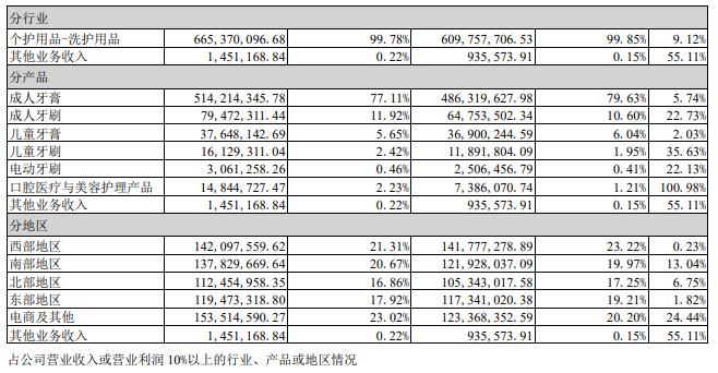 倍加洁上半年营业收入达4.84亿元,同比增长2.01%,净利润达3656.69万元,同比增长 96.20%,实现营收及净利润的双增长。倍加洁在财报中指出,营业收入变动的主要原因是受到口腔护理产品的销售增长带动影响。