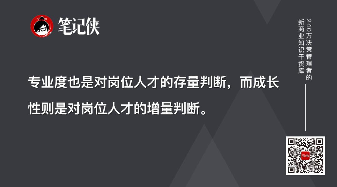 所以,专业度也是对岗位人才的存量判断,而成长性则是对岗位人才的增量判断。