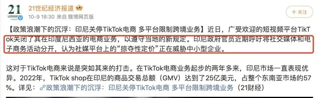 经过印尼这么一搞,也就是说,未来类似 TikTok 这样的社媒平台,在当地只可进行广告推广,不能进行电商交易了。
