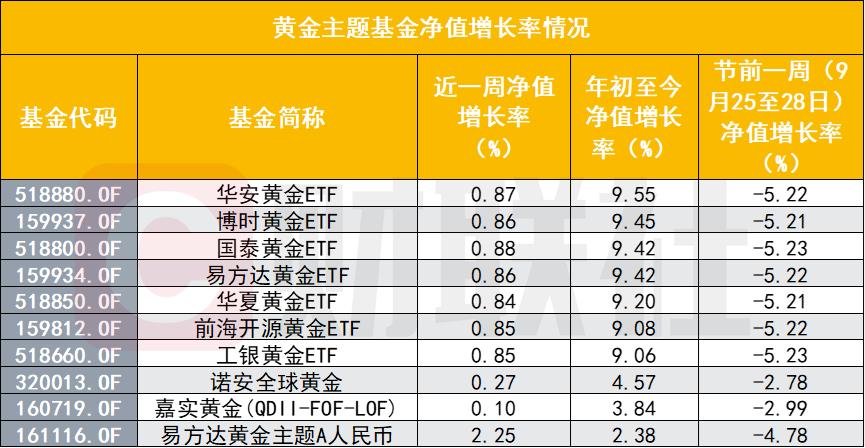 国际金价遭9连跌,黄金主题基金近一周回温