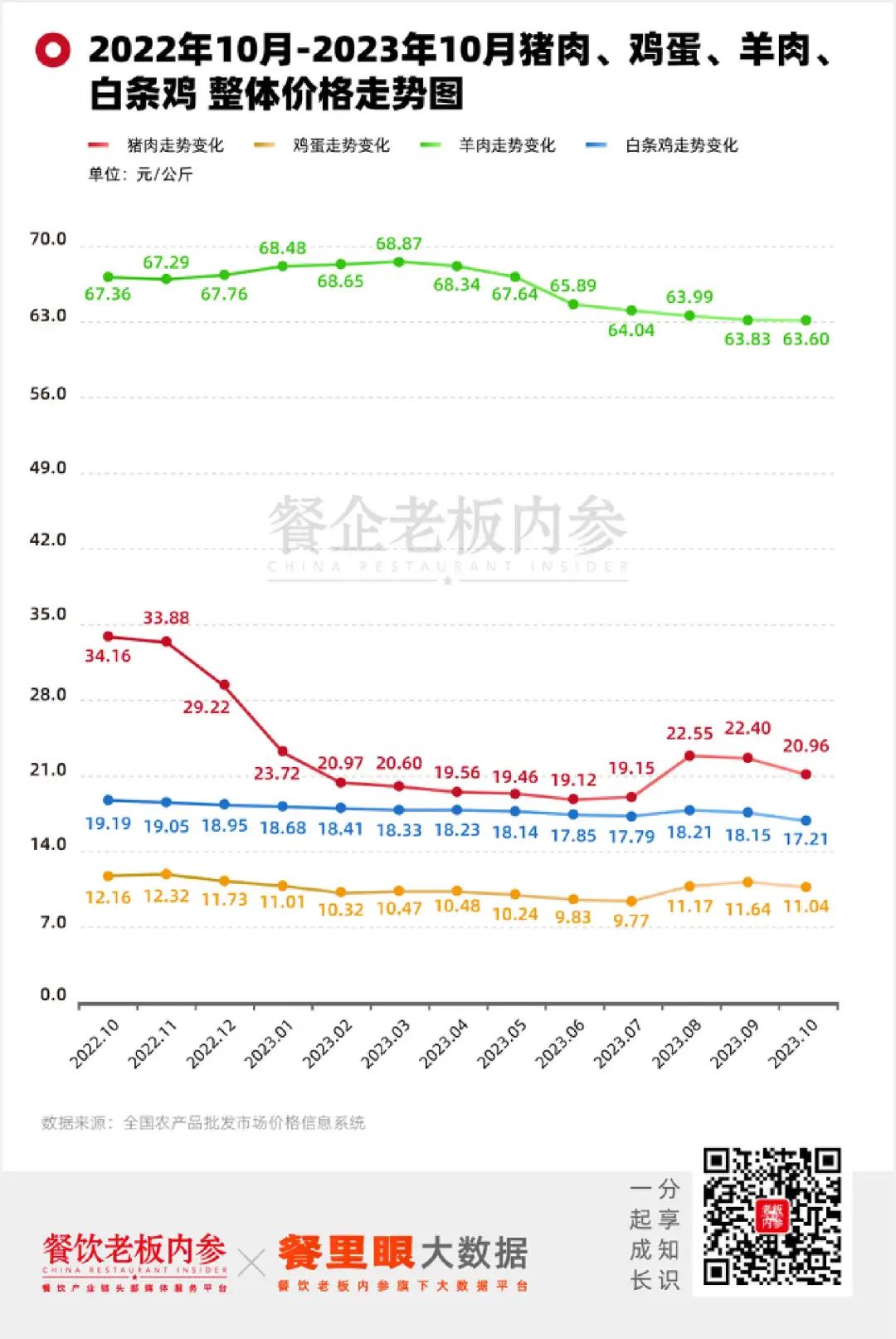 其他平缓走跌的,还有鸡蛋、羊肉和白条鸡。
