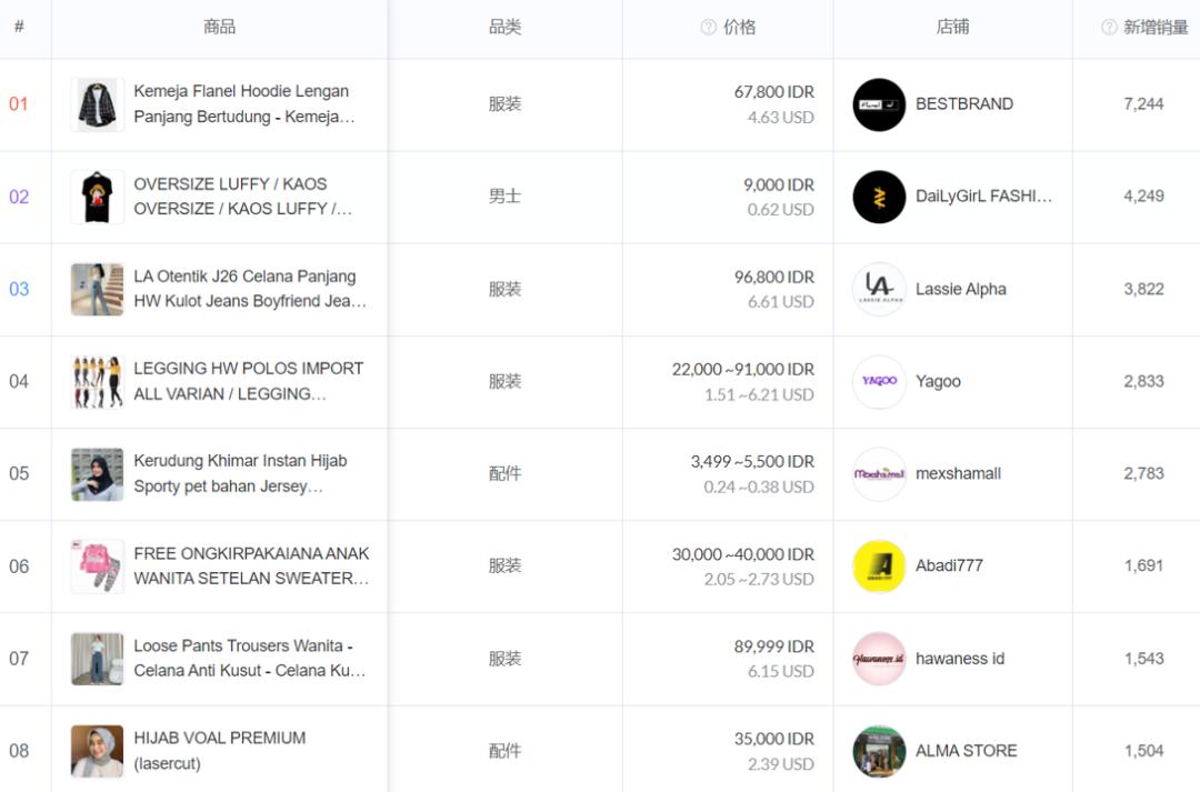 而且当地人比较看重低价,商品单价都不高,比如你看今年 7 月的印尼销量榜,前三名售价分别是 31 元、 4 元和 45 元。