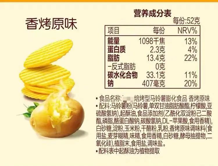 但仅仅是用热空气加热,温度还不够高,没法让薯片实现酥脆的口感,回头来还是得在热风干燥的时候,给薯片表面淋油、涂油;再加上土豆吸油的能力很强,所以即便非油炸薯片没有放到油锅里炸,脂肪含量也是很高的。