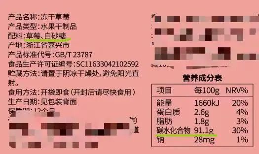 如果配料表里还有糖、蔗糖、果葡糖浆,或者食盐等,说明也加了糖和盐,在选择的时候也要注意。