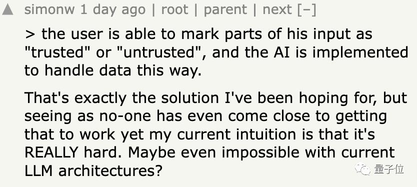 Simon觉得这是期待的解决方向,但还没看到有人能真正实现,应该很难,对于当前的LLM结构来说甚至不可能。