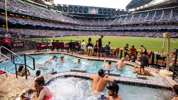 如果你还想获得更好的体验:在大通球场的右外野,有一个闻名遐迩的泳池看台——边看球边泡在泳池里,再配上服务生递来的美酒,纵观世界体育都是独一份的,简直就像是洛杉矶富豪们的「后花园」。